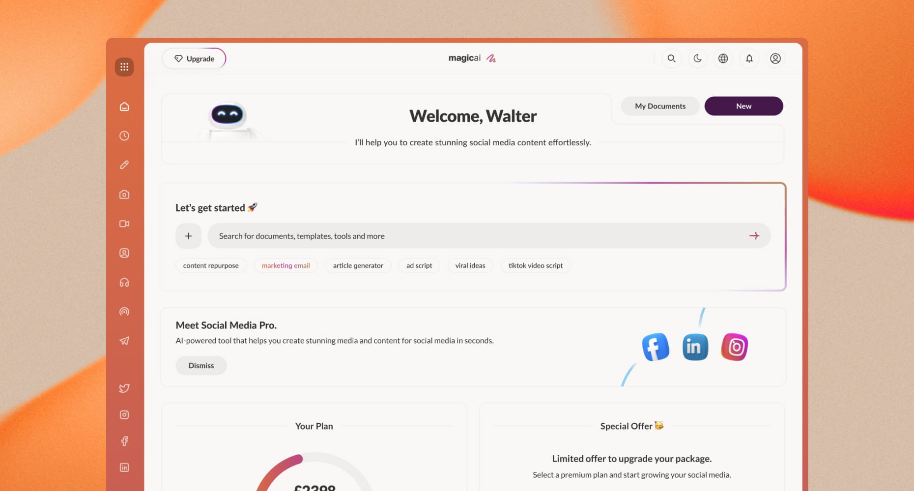 This comprehensive dashboard offers a clean, intuitive, and well-organized interface designed to streamline the way you manage your social media presence. From scheduling and publishing posts across multiple platforms to accessing a library of customizable templates, in-depth performance analytics, and advanced AI-generated content tools, everything you need is centralized in one powerful workspace—making content creation and management faster, smarter, and more efficient than ever.